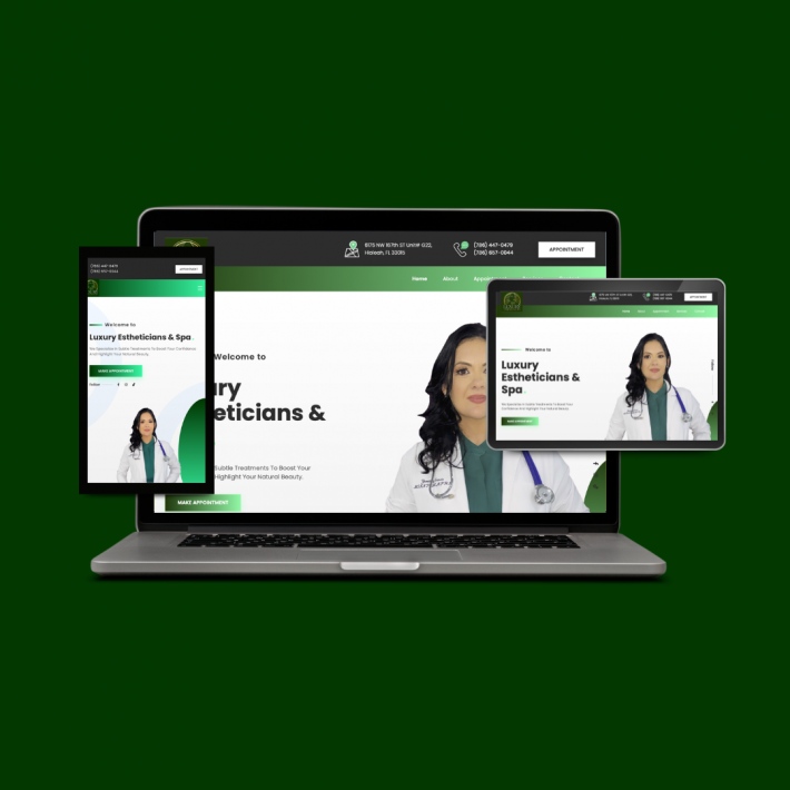 Modern, user-friendly website for Luxury Estheticians Spa, a beauty and wellness business specializing in skincare and spa treatments. The site features service details, online booking, and a sleek design reflecting the spa’s luxurious brand.